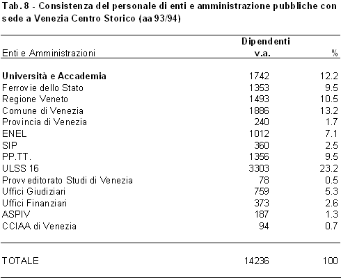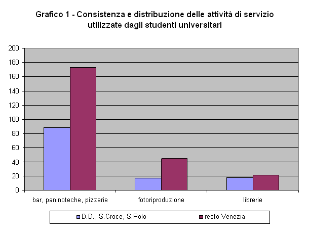 L’analisi dei dati statistici relativi al peso delle istituzioni universitarie veneziane nel quadro dell’economia urbana mostrano un costante indice di crescita, sia sotto il profilo quantitativo che qualitativo.