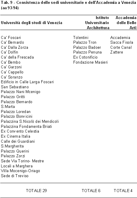Il peso crescente che la componente studentesca assume all’interno del tessuto sociale; la qualità ed il forte grado di specializzazione dell’offerta di corsi; la vocazione sempre più internazionale assunta dalle istituzioni universitarie veneziane, la presenza delle due università nei più importanti progetti di sviluppo della città: dalla salvaguardia al polo tecnologico di Marghera, rappresentano i punti di forza per la realizzazione di un progetto di ulteriore sviluppo del sistema universitario capace di trainare un più generale progetto di sviluppo socioeconomico cittadino.